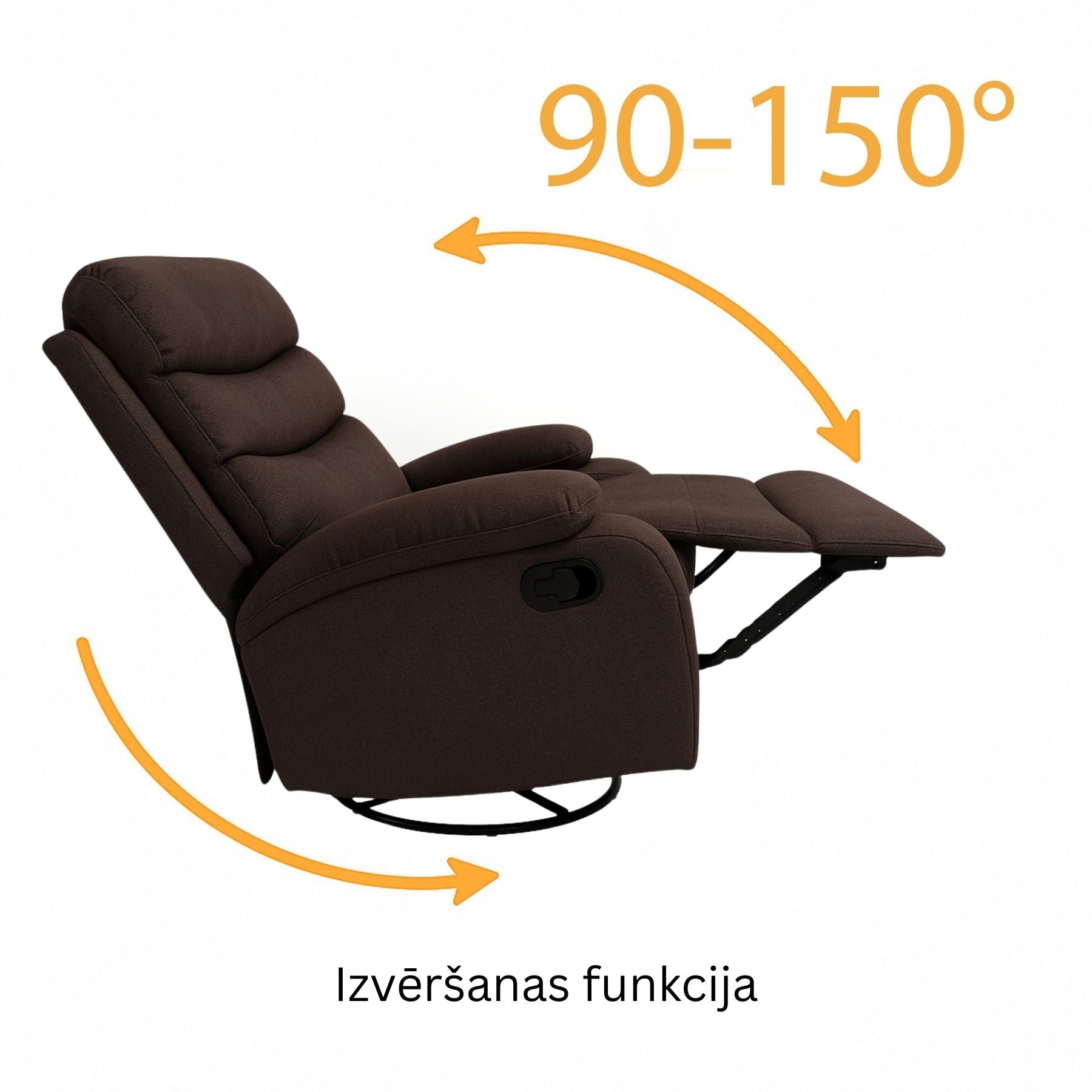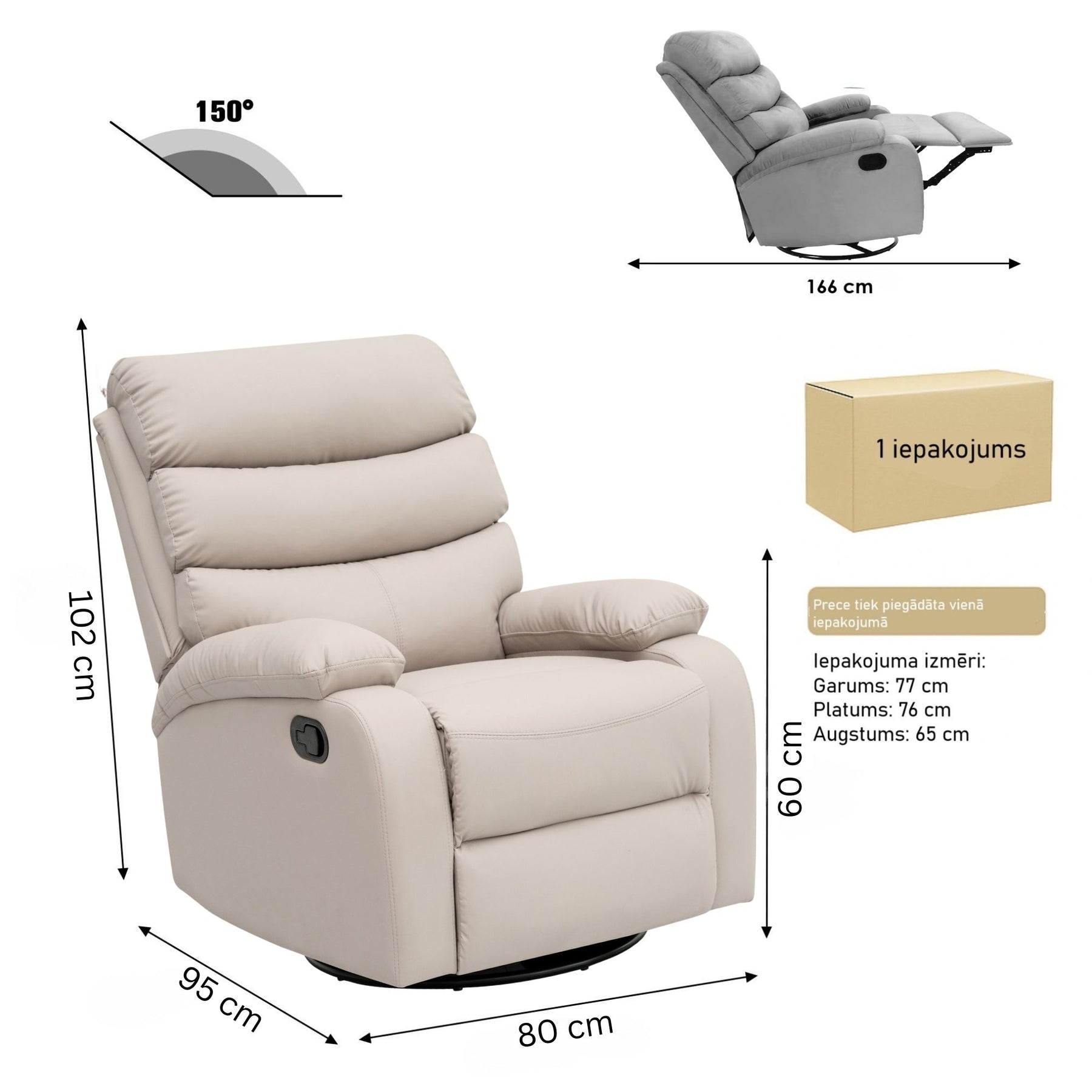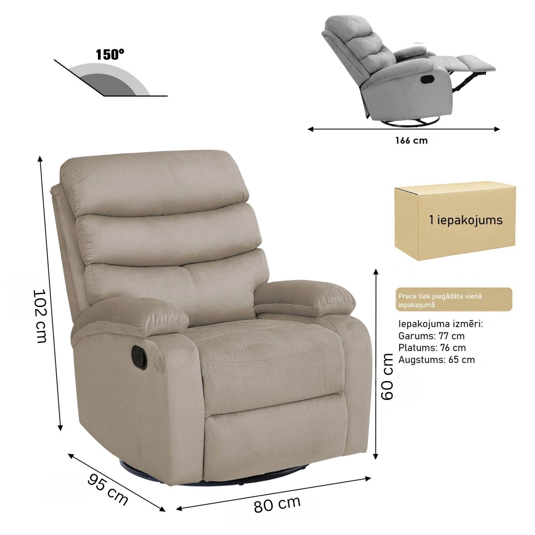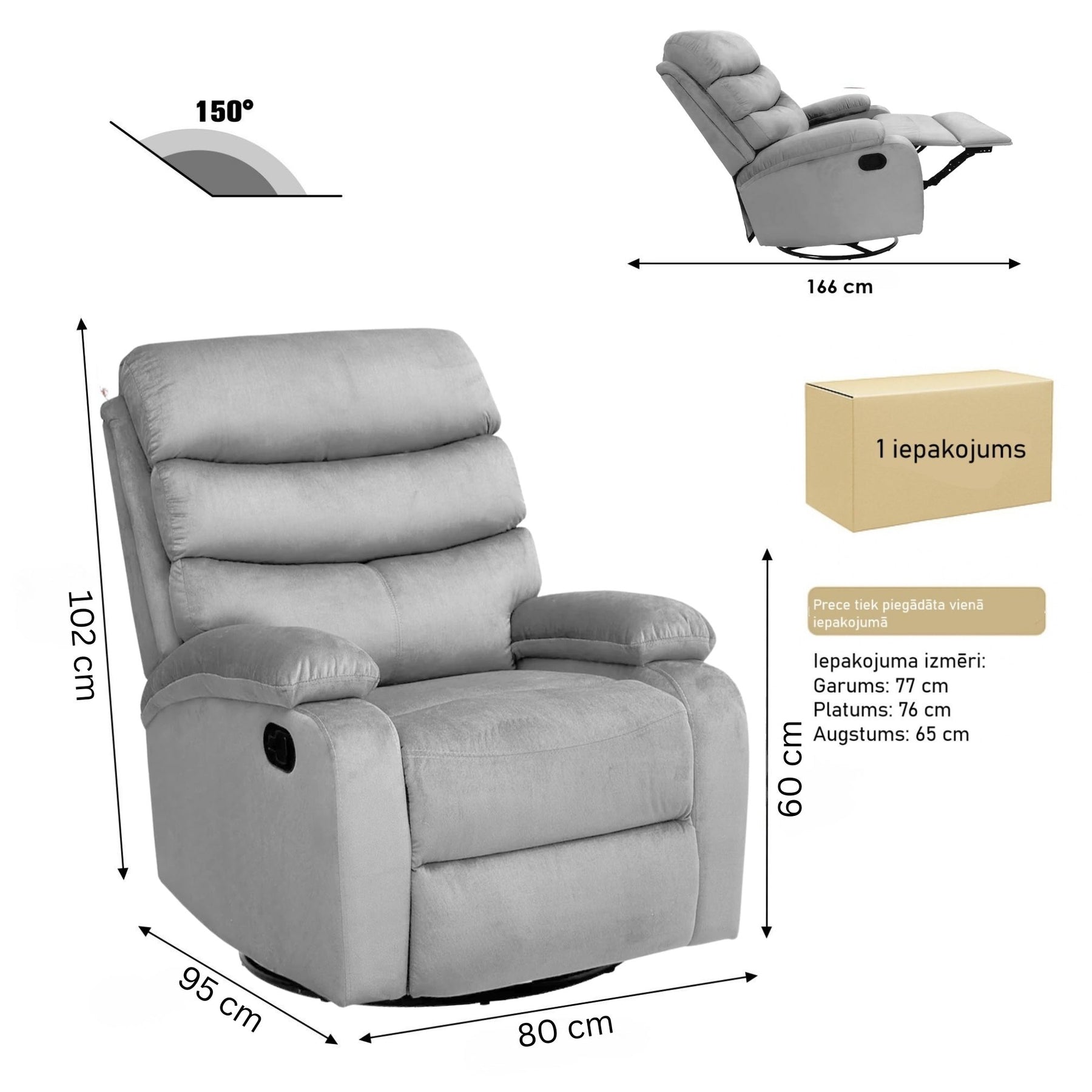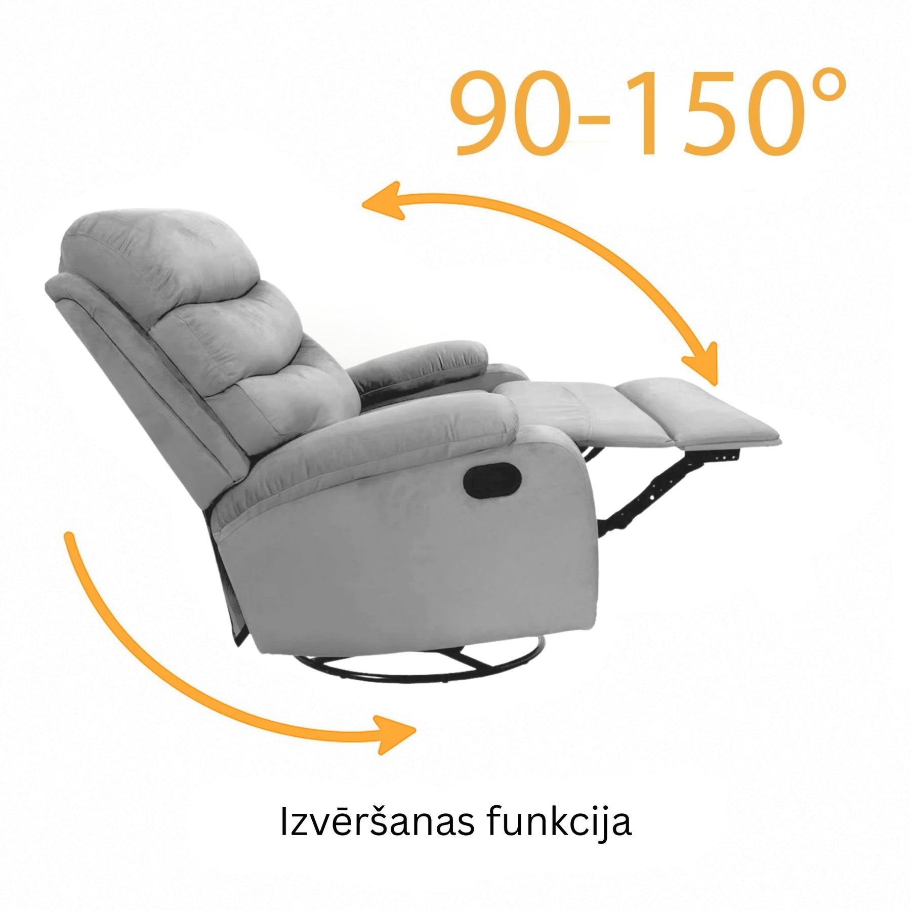 Mīksts, ērts un funkcionāls - reglaineris BOSTON ir paredzēts gariem atpūtas mirkļiem mājas. 3in1 - šim atpūtas krēslam ir trīs funkcijas vienā - 360° rotācijas, 30° šūpošanās un 90-150° izvēršanas.