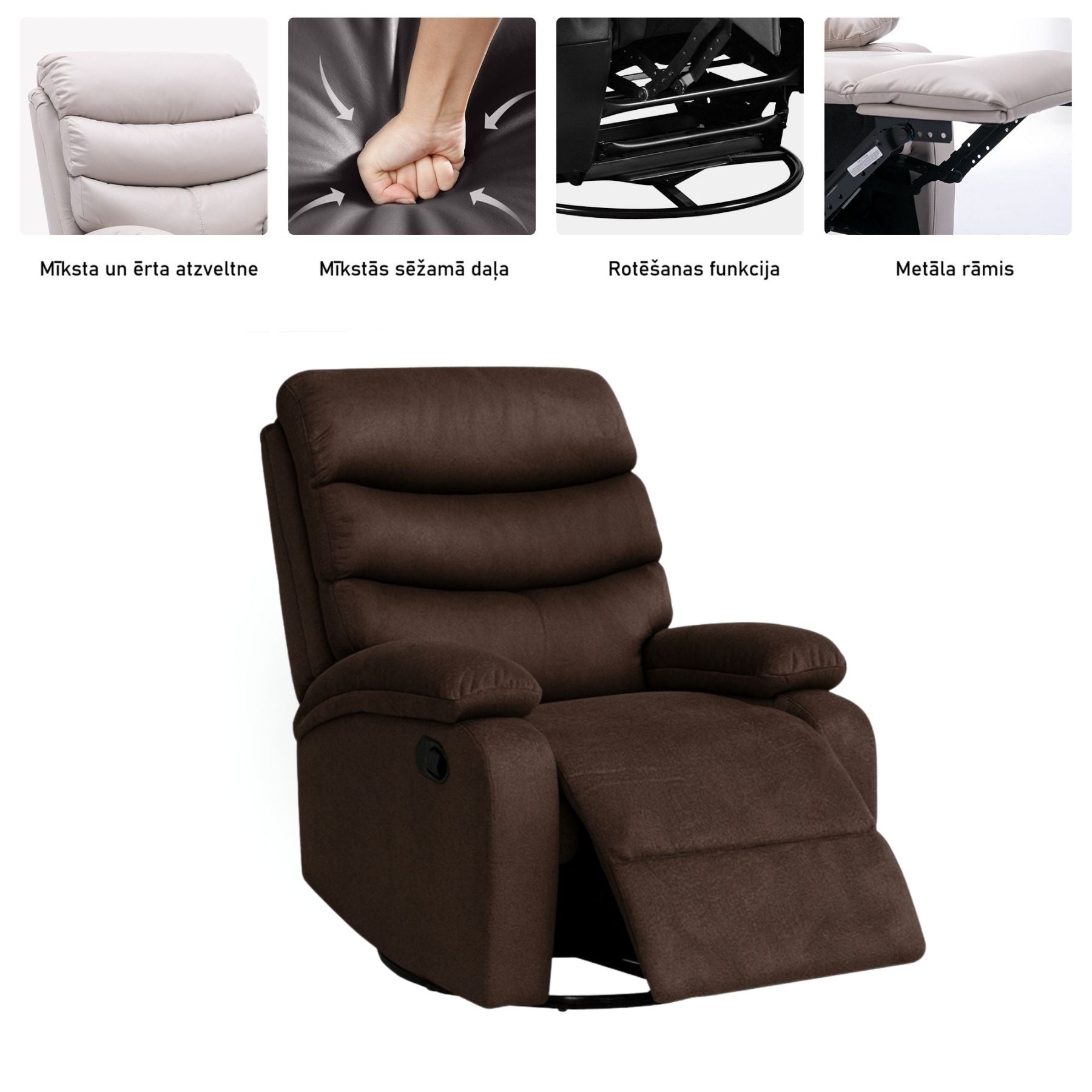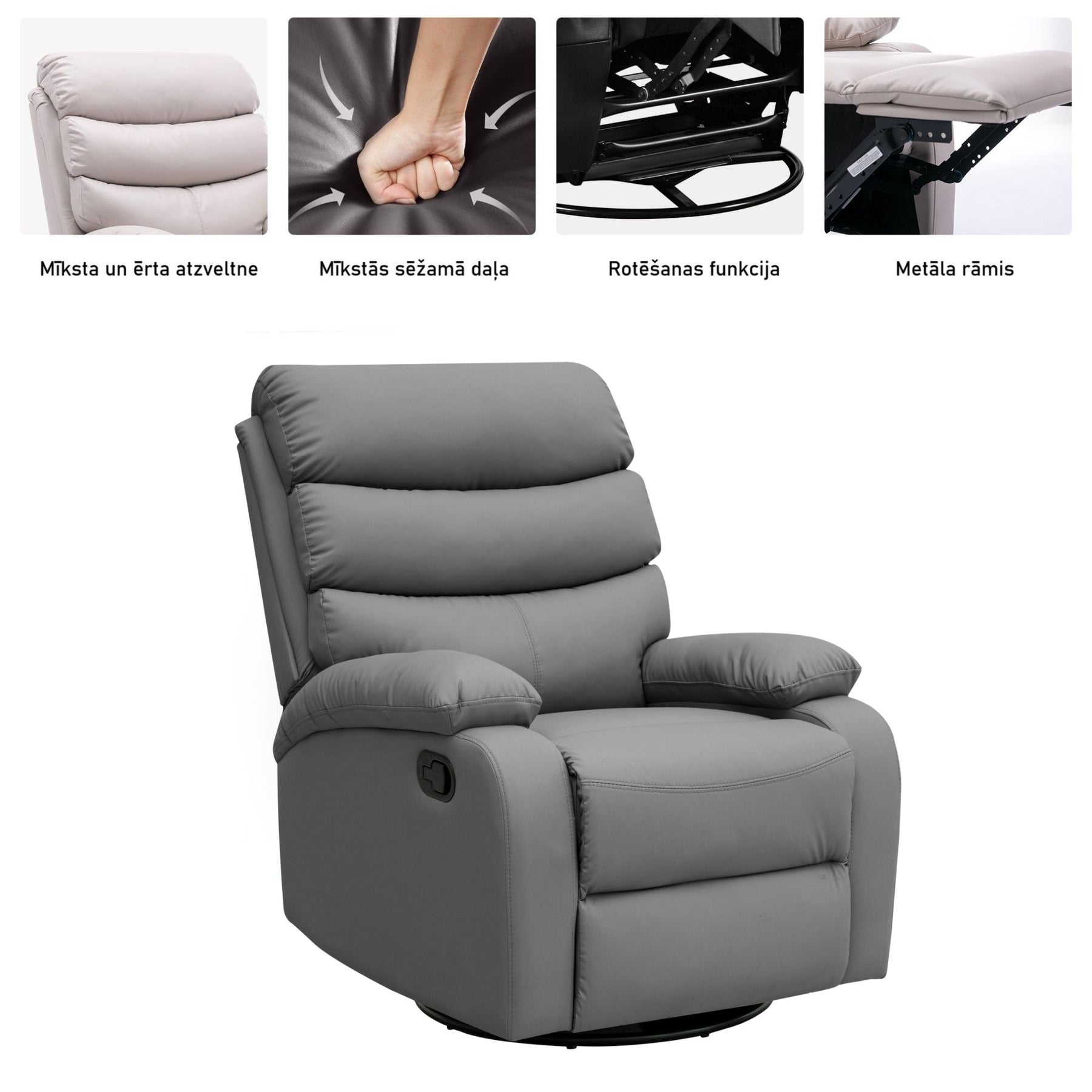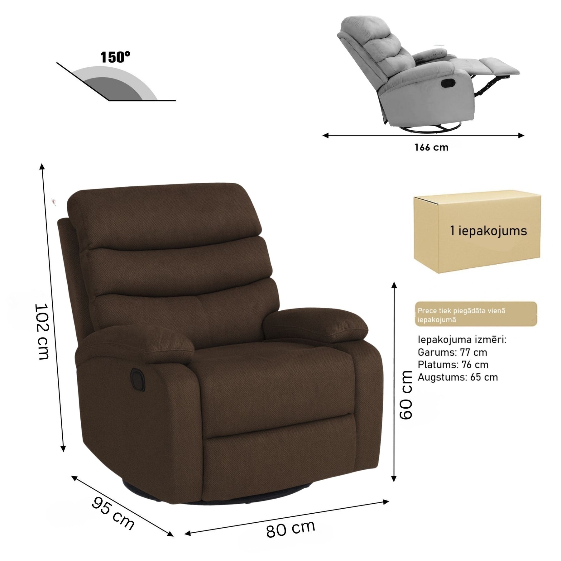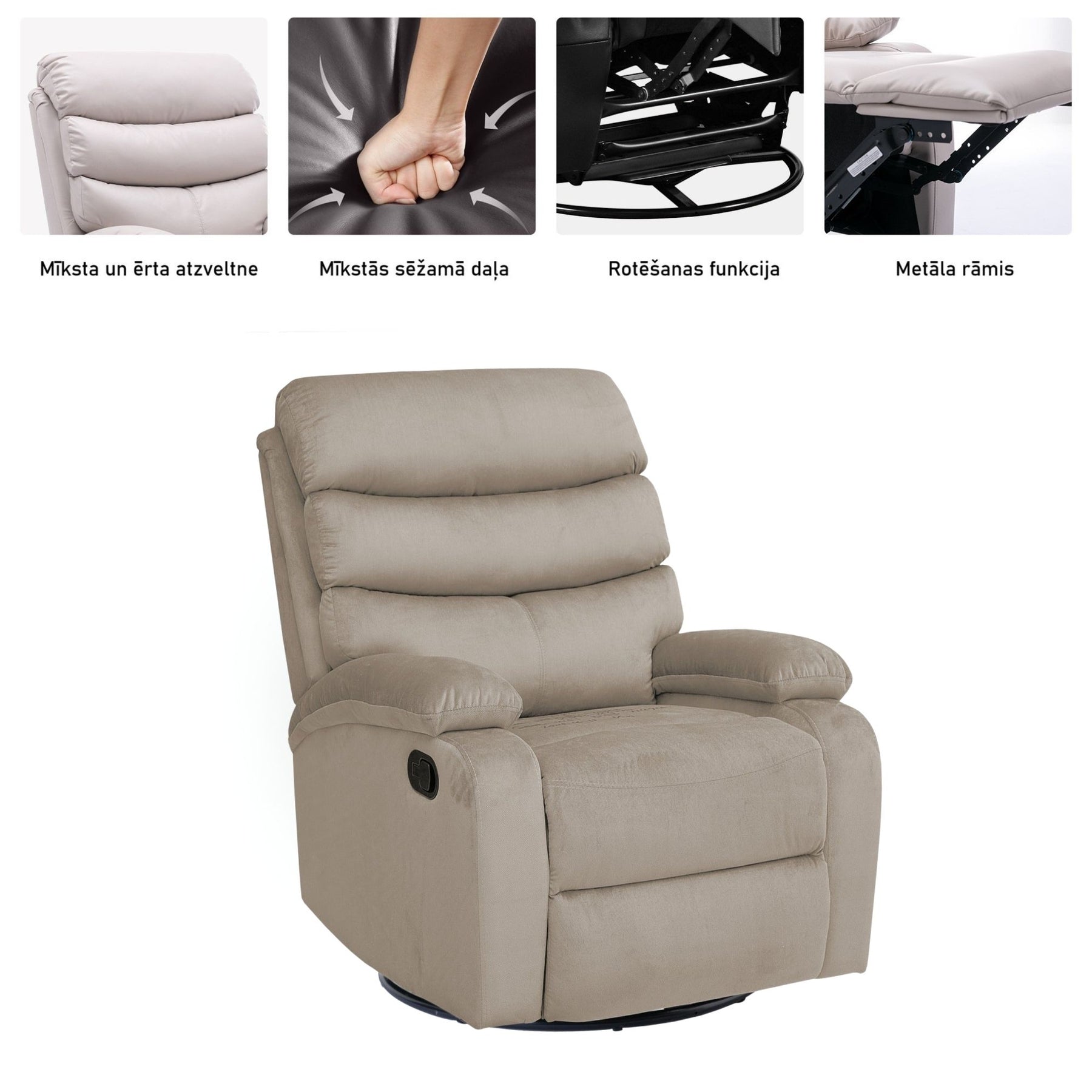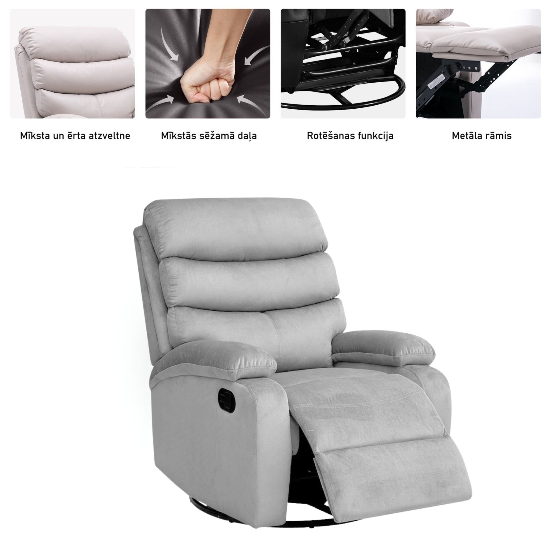 Mīksts, ērts un funkcionāls - reglaineris BOSTON ir paredzēts gariem atpūtas mirkļiem mājas. 3in1 - šim atpūtas krēslam ir trīs funkcijas vienā - 360° rotācijas, 30° šūpošanās un 90-150° izvēršanas.