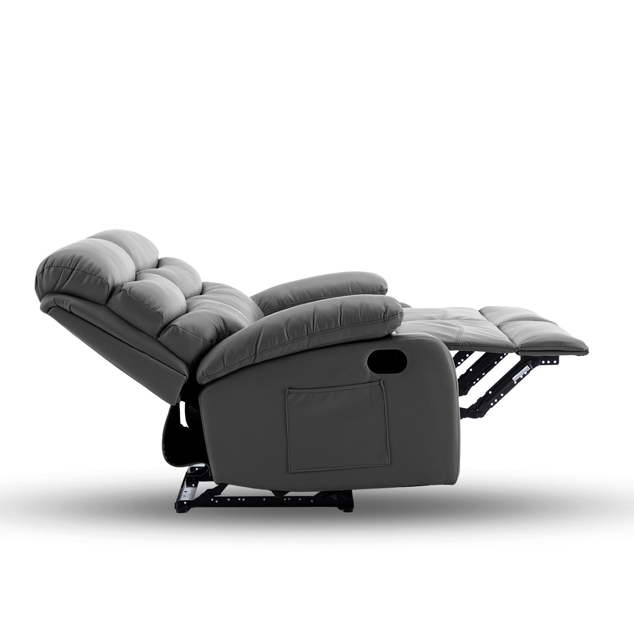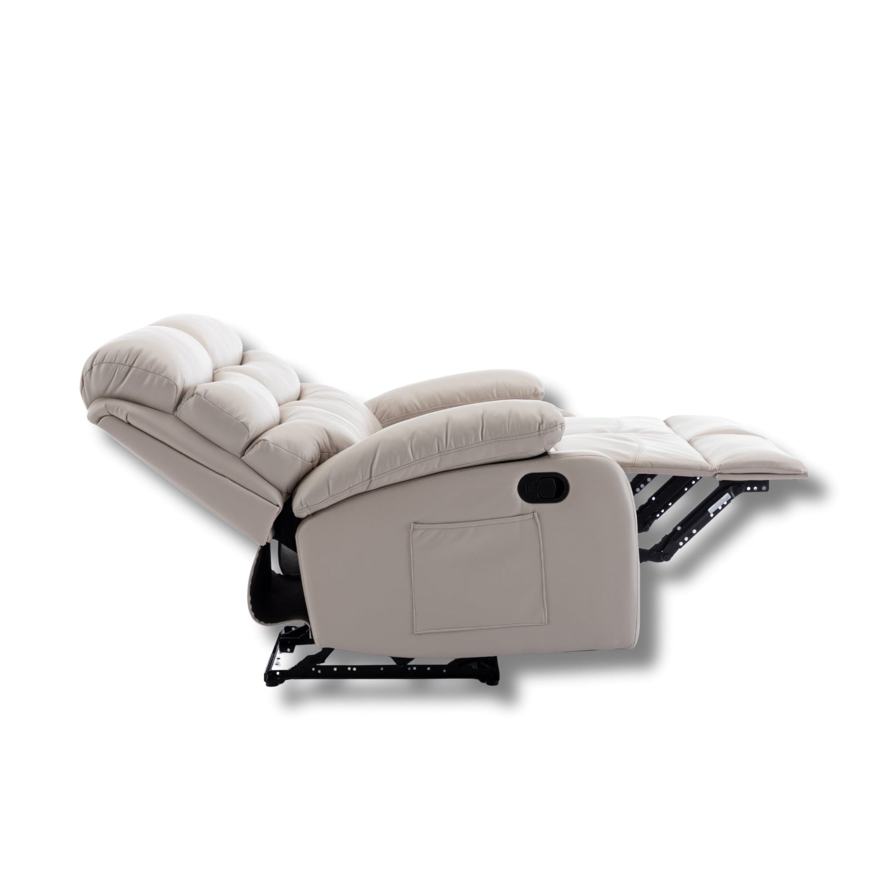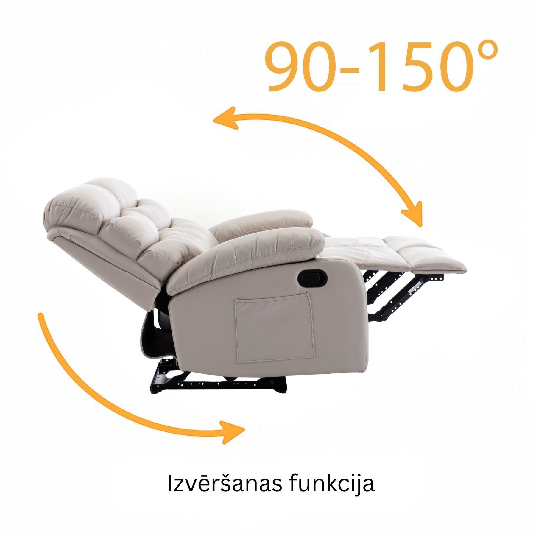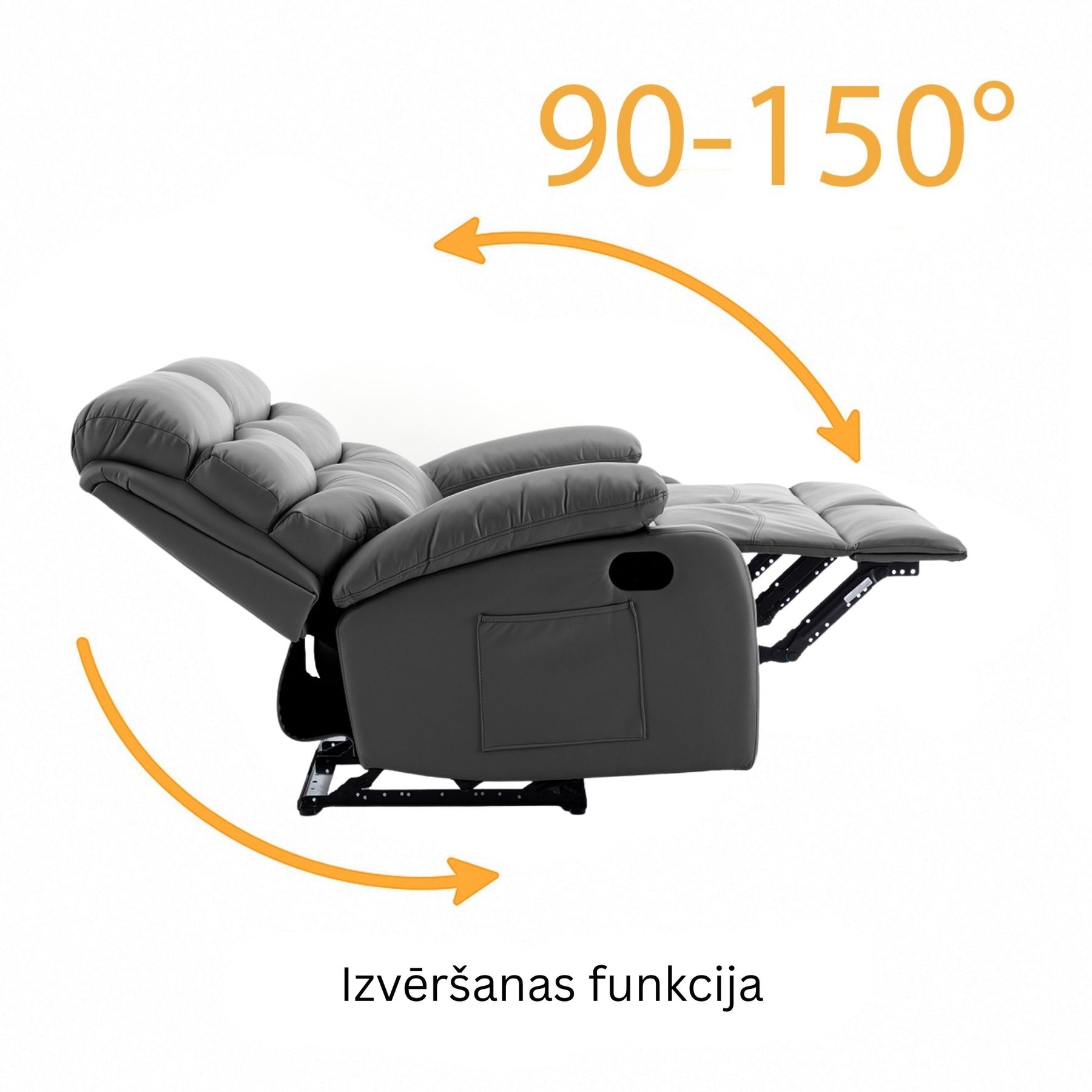 Viss tiek vadīts ar vienu roku – pavelciet sviru, un kāju balsts izplešas, bet atzveltne atgriežas ar vienu kustību. Nekādu pūļu, nekādu trokšņa – tikai ērta pāreja no sēdēšanas uz pilnīgu relaksāciju.