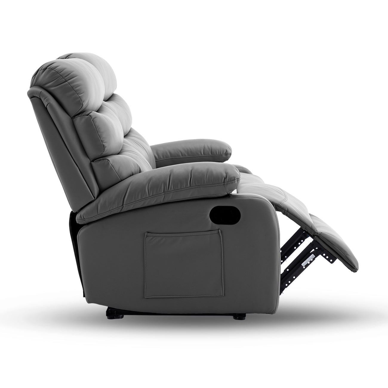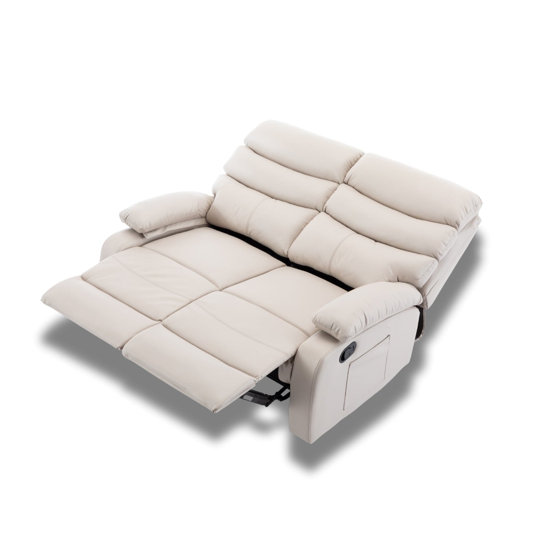 Šis divvietīgais dīvāns ar reglainera mehānismu ir radīts tiem, kuri savās mājās vēlas izveidot īstu atpūtas oāzi. Mīkstie un platie roku balsti, ergonomiski veidotais atbalsts mugurai un kājām, kā arī īpaši maiga eko āda nodrošina izcilu komfortu gan sēžot, gan atpūšoties guļus stāvoklī. Abām sēdvietām ir atsevišķi regulējami atzveltnes un kāju balsta mehānismi, kas ļauj katram izvēlēties sev ērtāko pozīciju – no sēdus stāvokļa līdz gandrīz pilnībā guļus stāvoklim.