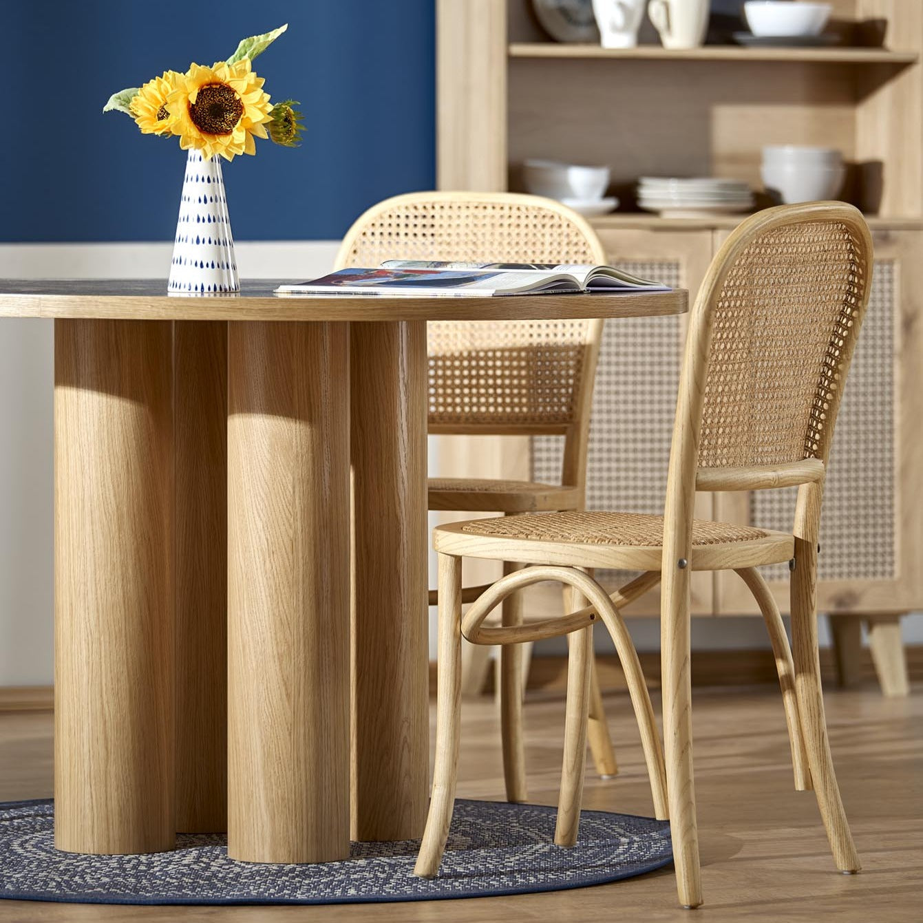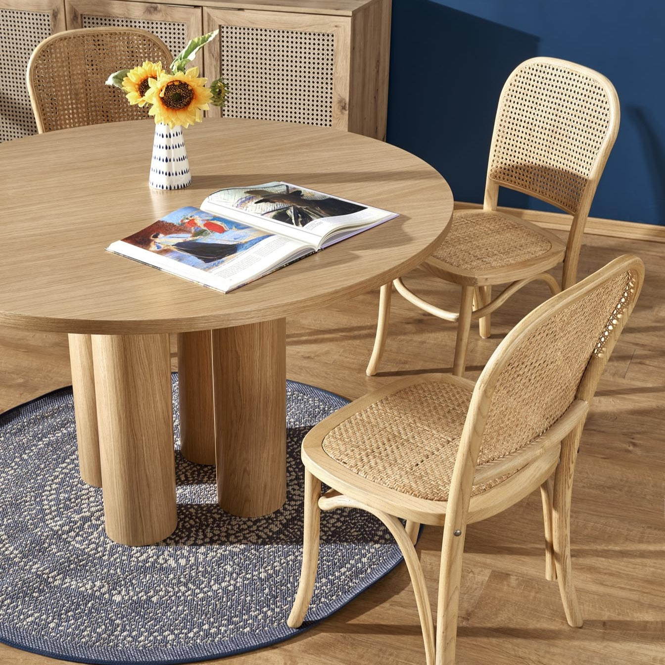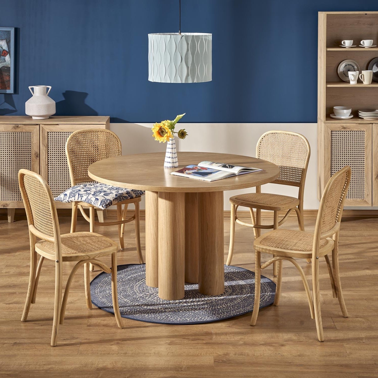 Šis elegantais apaļais ēdamgalds ir lieliska izvēle, lai jūsu mājās radītu siltu un mājīgu atmosfēru. Tā apaļais dizains harmoniski iederēsies jebkurā interjerā un piešķirs telpai gaišu un modernu eleganci. Ozolkoka tonis izceļ galda dabisko skaistumu, savukārt apaļās kājas ir vēl viena raksturīga iezīme, kas ne tikai papildina dizainu, bet arī piešķir galdam izturīgu un stabilu konstrukciju.