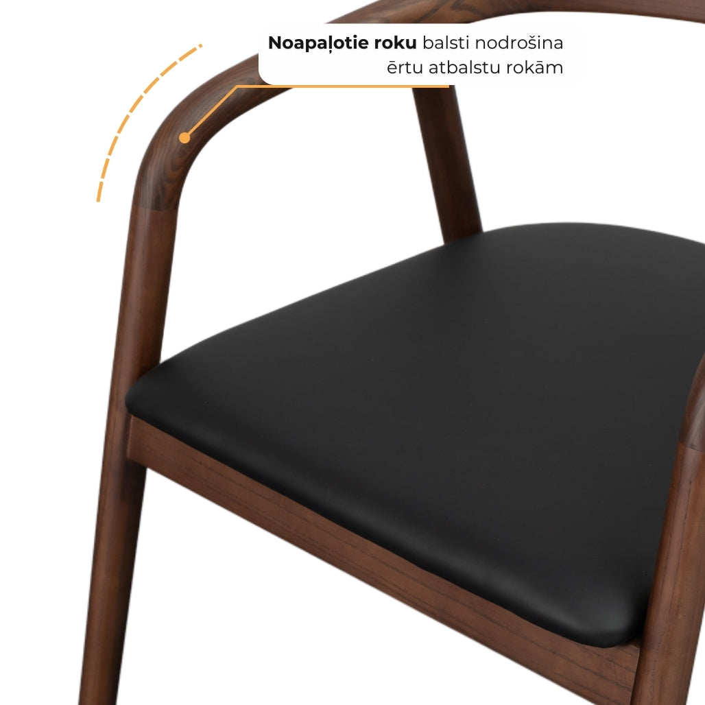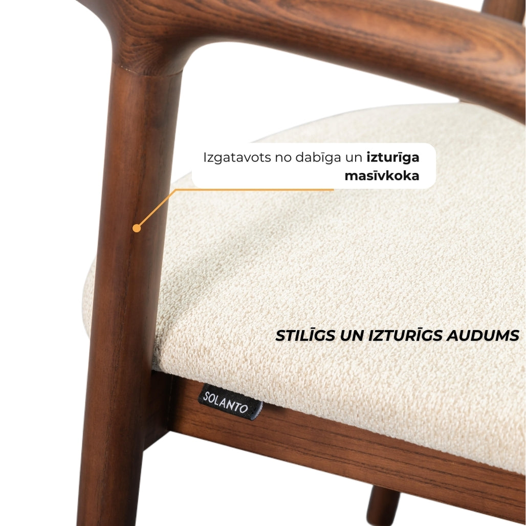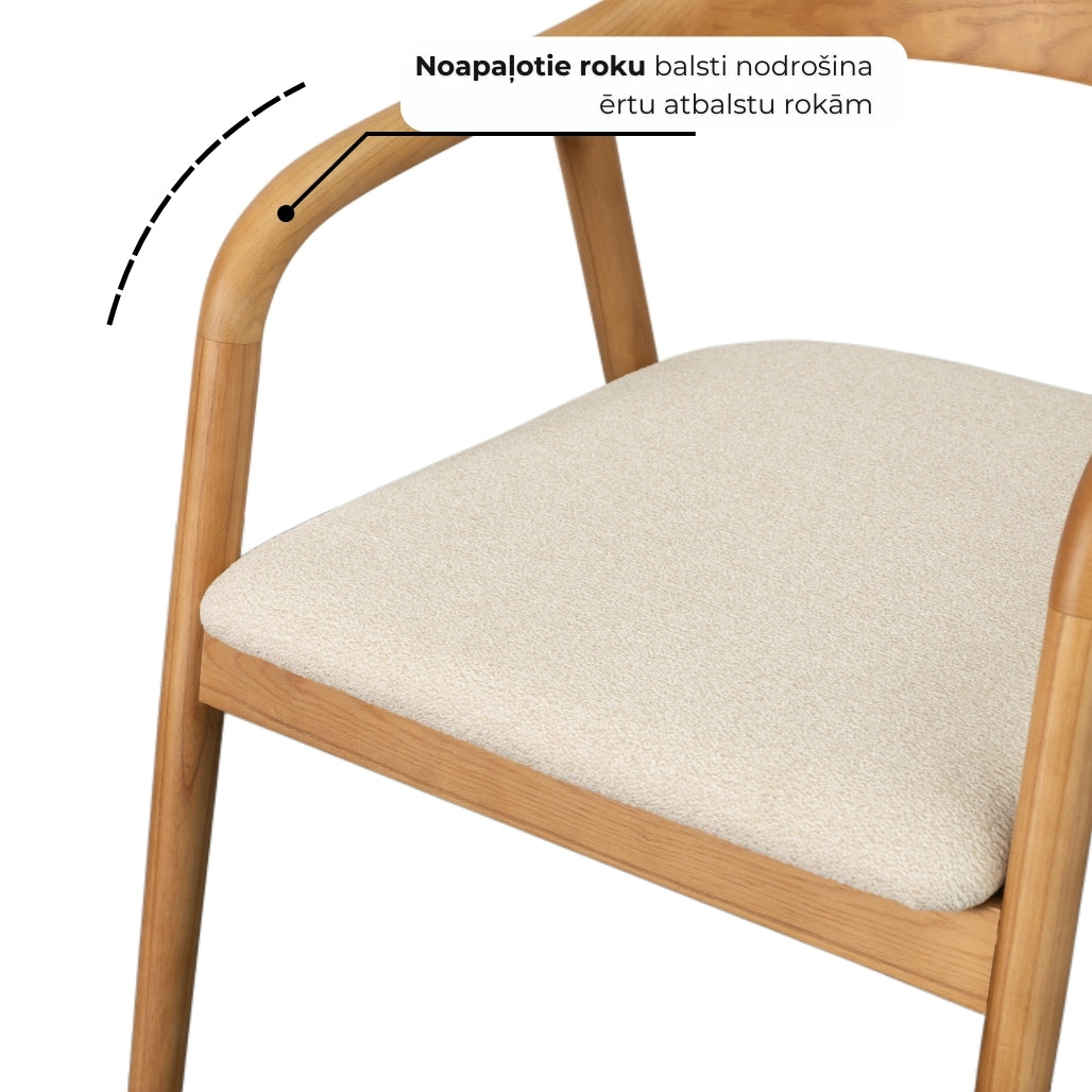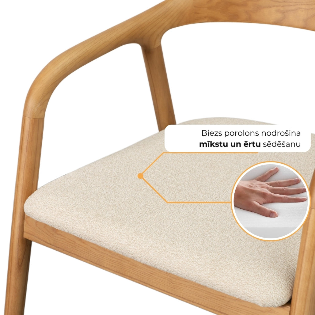 Masīvkoka konstrukcija, noapaļotie roku balsti un mīkstā sēžamā daļa rada mājīgu, bet vienlaikus izteiksmīgu dizainu. Krēslam nav nepieciešama montāža, tāpēc tā izturīgā konstrukcija nodrošina stabilitāti un izturību.