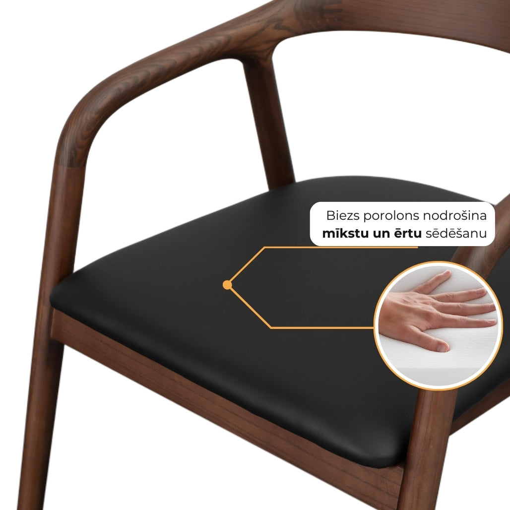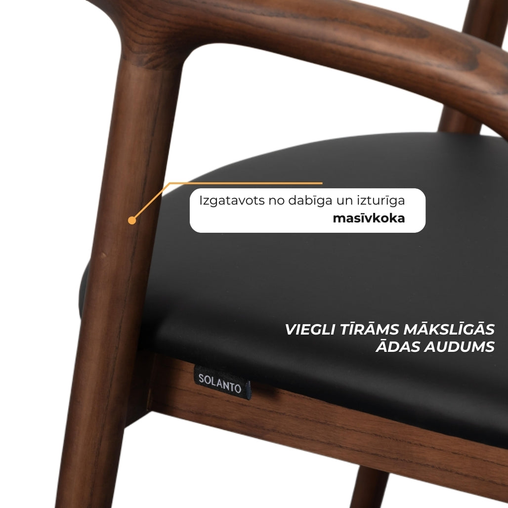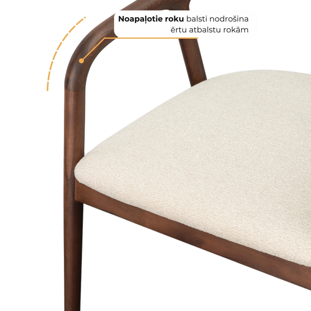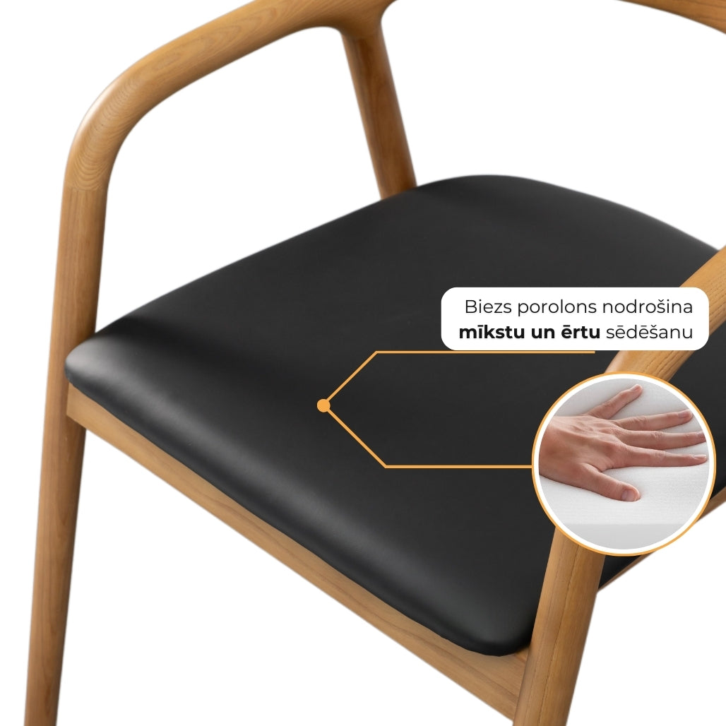 Masīvkoka konstrukcija, noapaļotie roku balsti un mīkstā sēžamā daļa rada mājīgu, bet vienlaikus izteiksmīgu dizainu. Krēslam nav nepieciešama montāža, tāpēc tā izturīgā konstrukcija nodrošina stabilitāti un izturību.