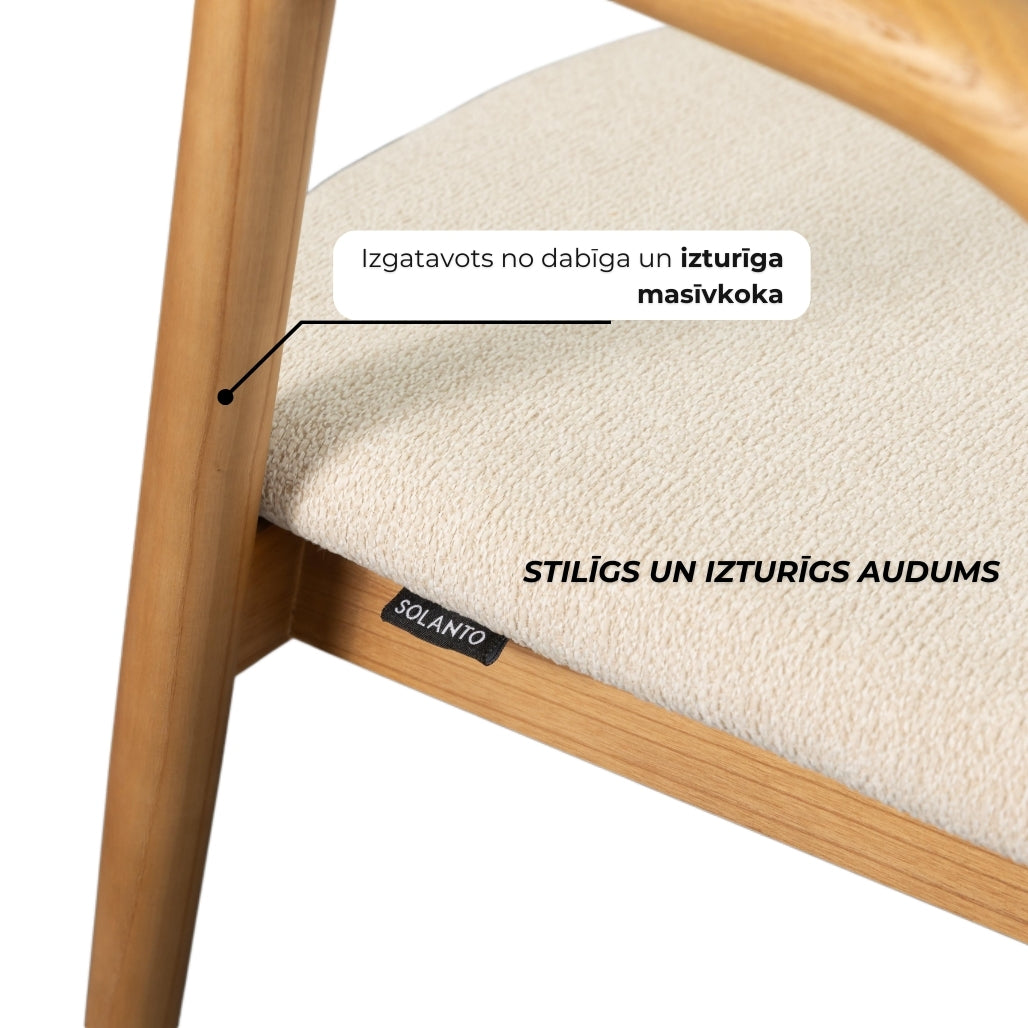 Šis SOLANTO® zīmola krēsls ir izgatavots, izmantojot tikai atbildīgi un ilgtspējīgi iegūtu koksni. Mūsu produktos izmantotie materiāli ir FSC® sertificēti, kas nozīmē, ka tie ir pārbaudīti neatkarīgās organizācijās, kuras ir novērtējušas izejmateriālu izcelsmi, ilgtspējību un drošību cilvēkiem un videi.