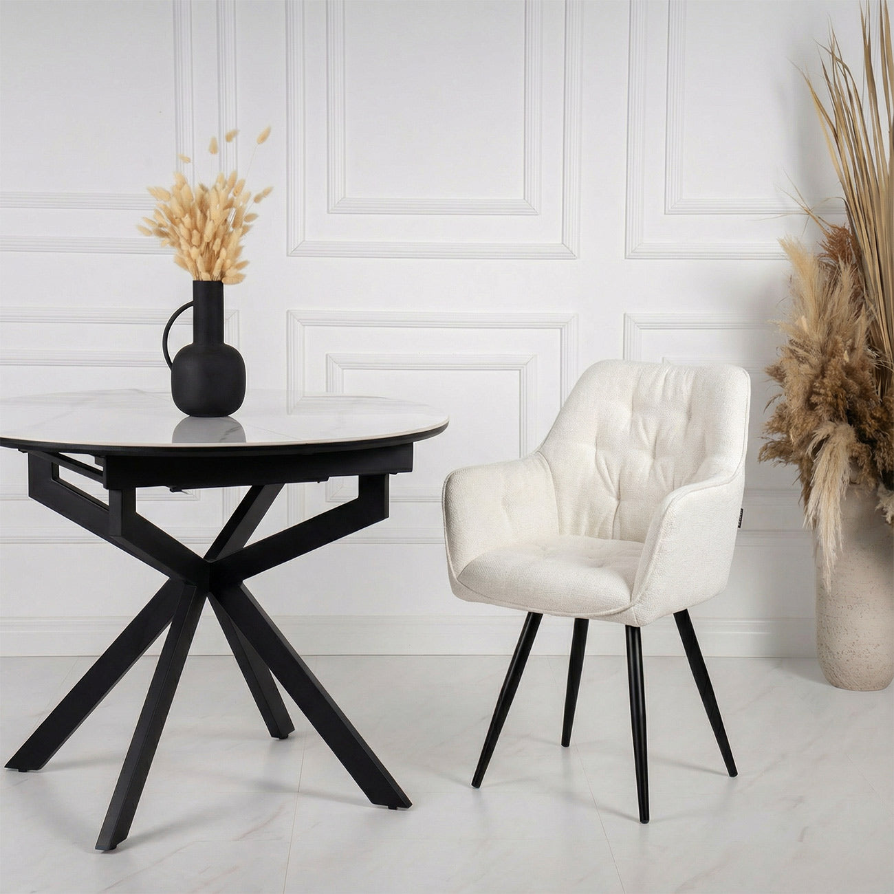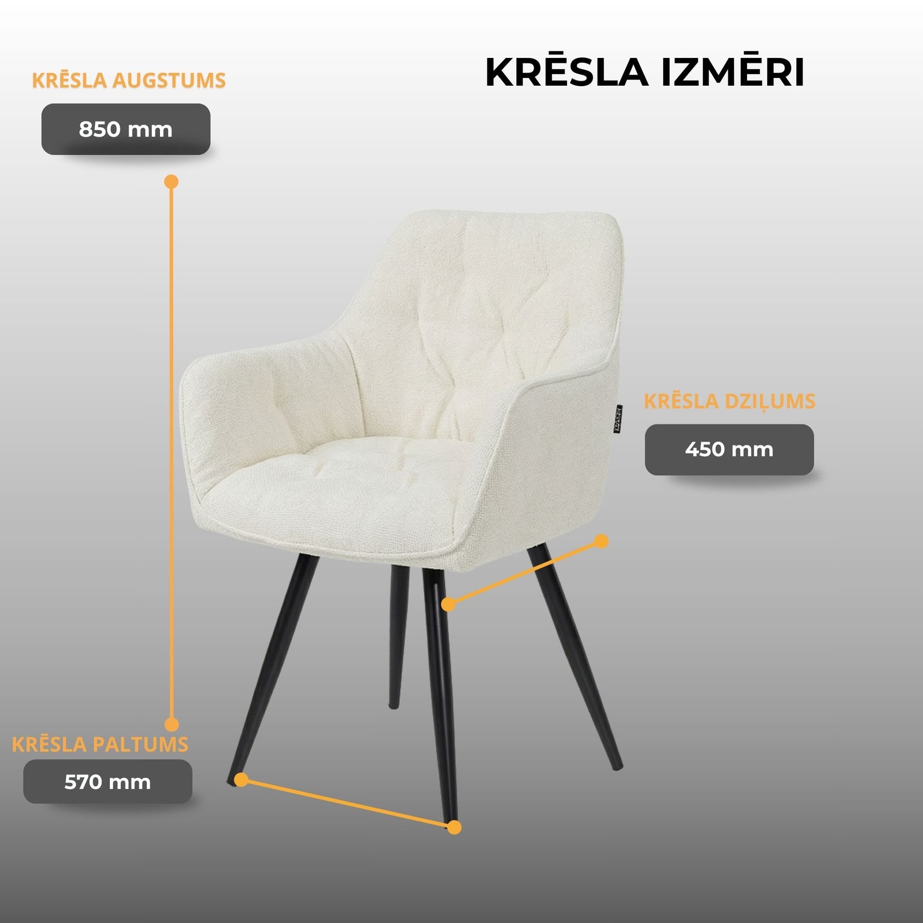 Krēsls ir aprīkots ar viegli izliektiem roku balstiem, kas nodrošina papildu komfortu, ilgstoši sēžot. Ergonomiski veidotā atzveltne balsta muguru un nodrošina pareizu stāju, padarot sēdēšanu patīkamu un ērtu.