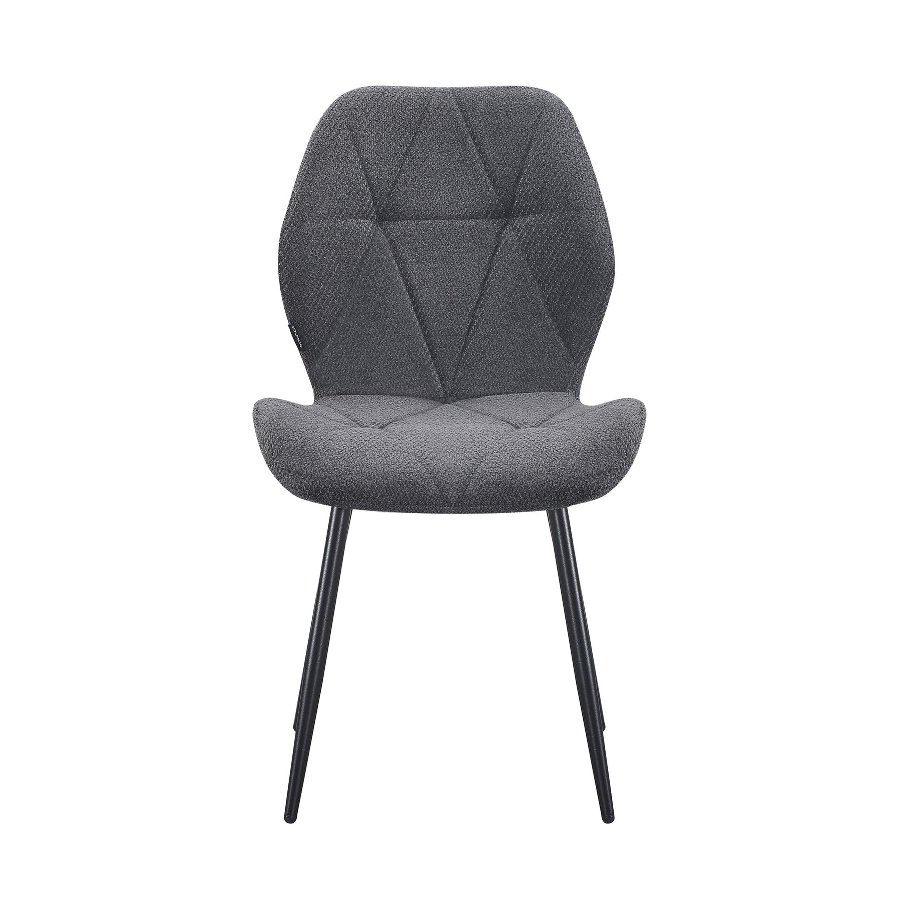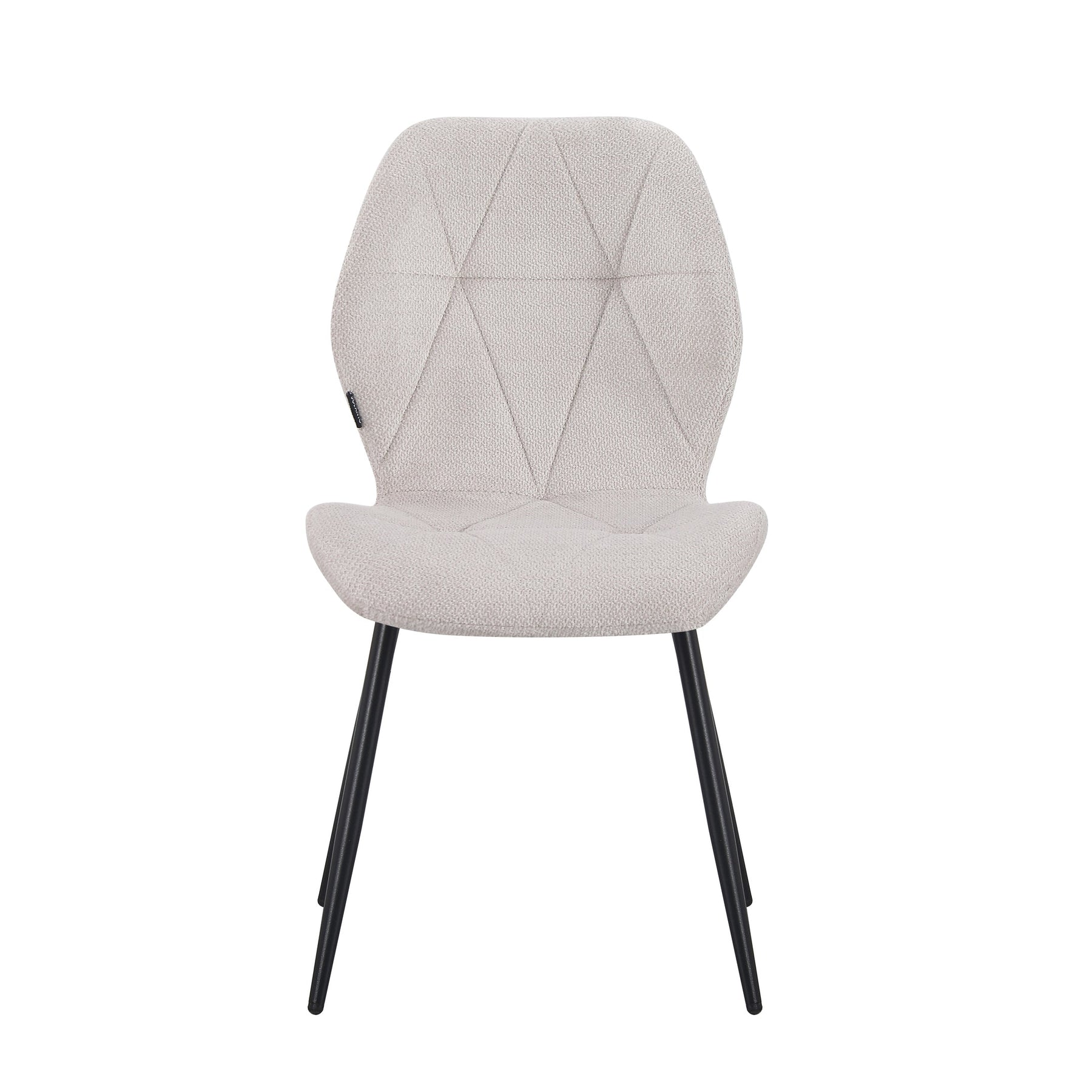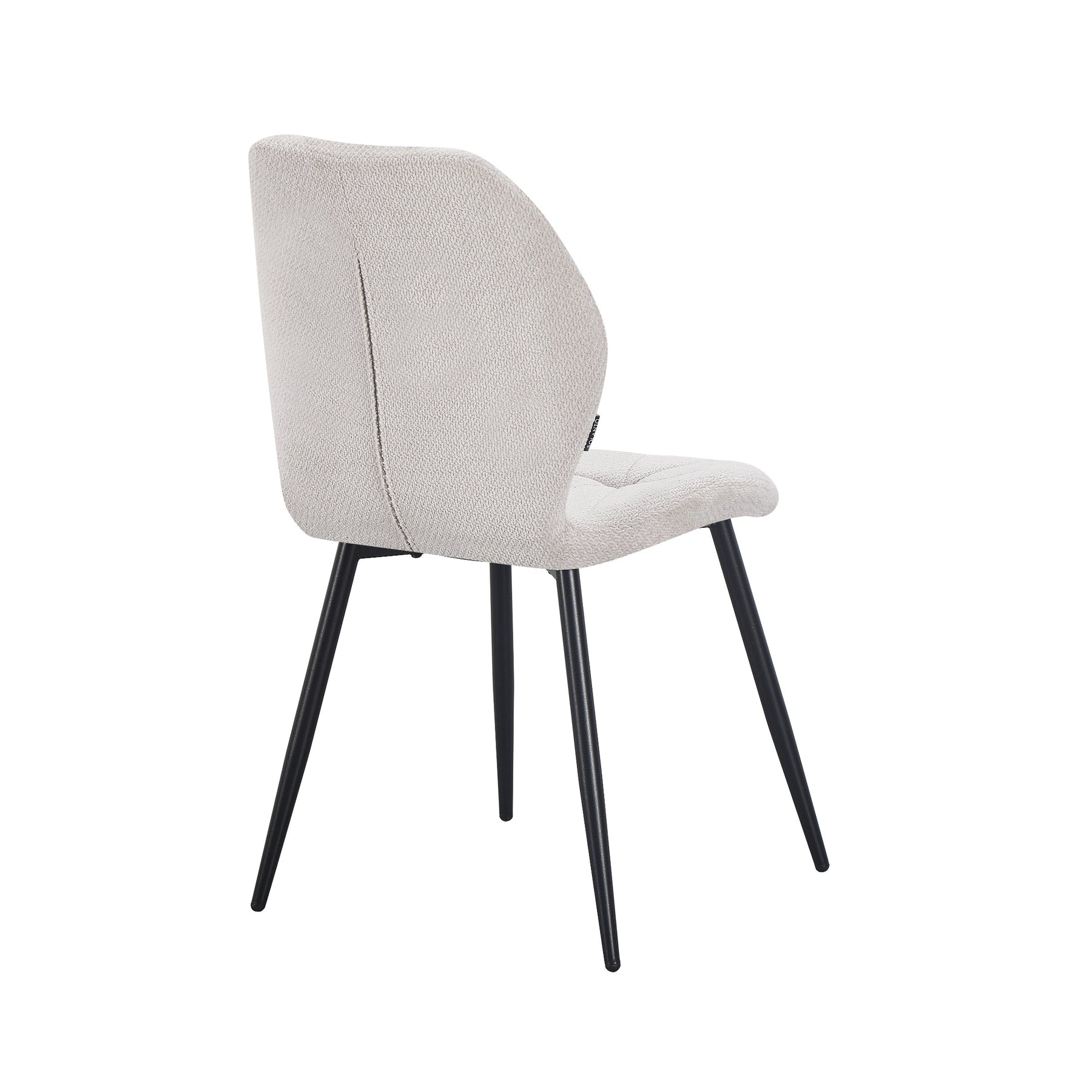 Šis krēsls izceļas ar savu ergonomiski izliekto atzveltni, kas nodrošina ērtu sēdēšanu un pareizu muguras atbalstu. Dekoratīvie izšuvumi piešķir krēslam modernu un elegantu izskatu, padarot to viegli pielāgojamu dažādiem interjera stiliem. Izturīgas ar pulverkrāsojumu krāsotas metāla kājas garantē stabilitāti un ilgstošu lietošanu.