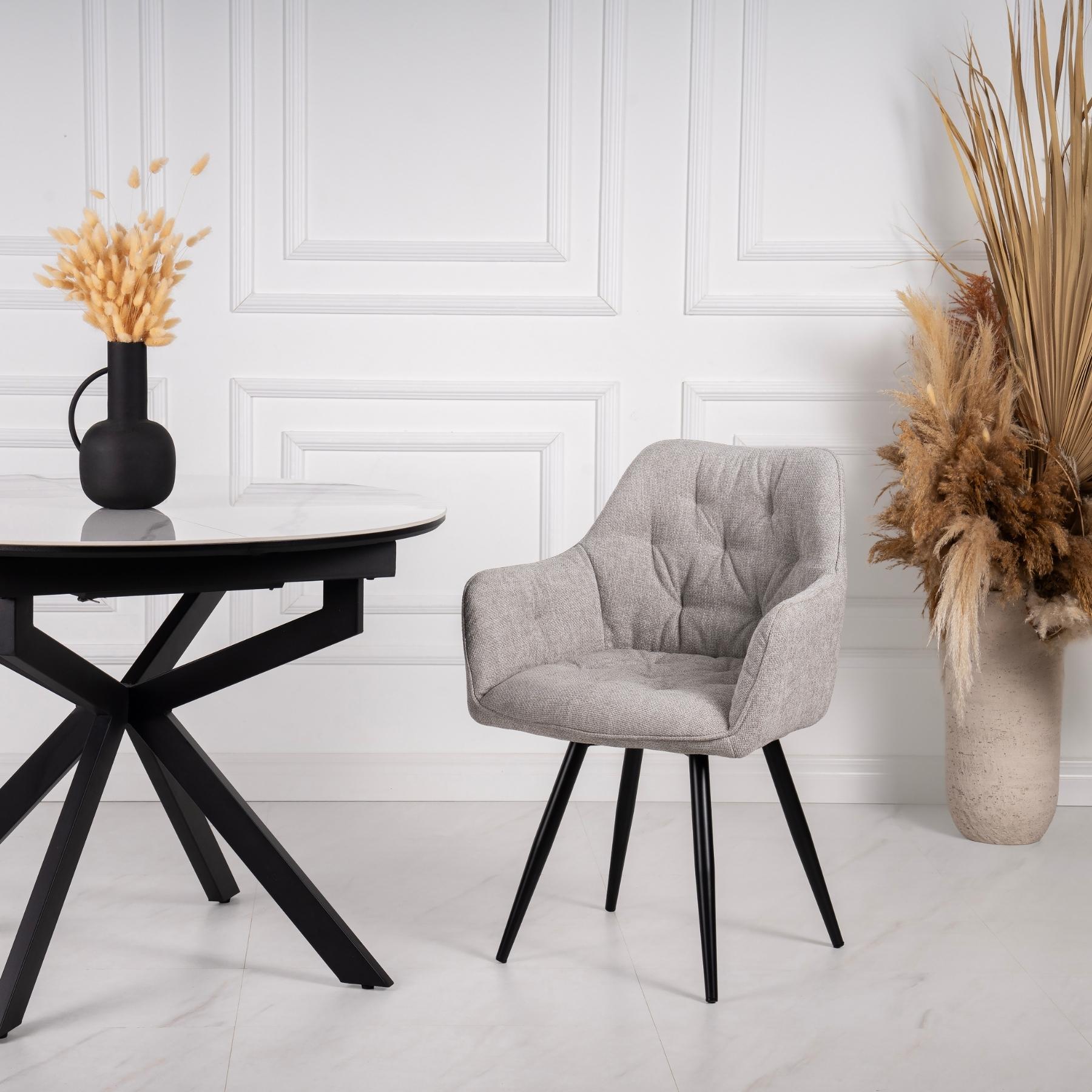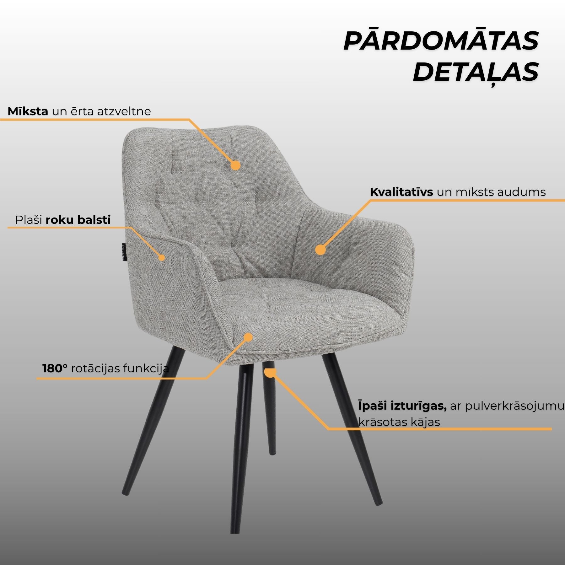 Krēsls Nino – elegance un komforts Jūsu mājāsModerns, stilīgs un neticami ērts! Šis krēsls kļūs par izteiksmīgu akcentu jebkurā telpā – vai tā būtu ēdamistaba, viesistaba vai darba kabinets. Mūsdienīgais dizains, izsmalcināti dekorētais velūra audums un stingrās metāla kājas rada gan stabilitātes, gan mājīguma atmosfēru.